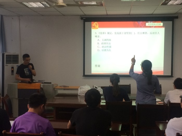 在“两学一做”的背景下,为了探索理论知识学习的新载体,提升理论知识学习的实效,按照公司总支工作计划,于2017年6月14日下午14:30在公司会议室举行2017党的知识抢答赛。英国365上市公司总支教工支部参加,比赛以党小组为单位参赛,分为必答题和抢答题两个部分,由教工支部书记钟利主持。