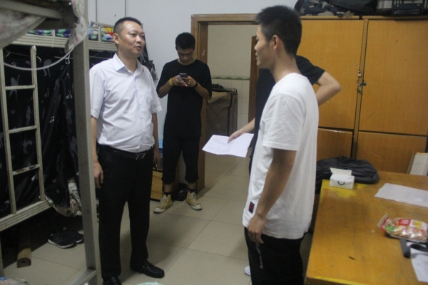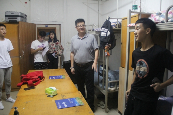 为帮助2019级新生更快融入新环境,加强师生间的互动交流,2019年9月8日21:00,公司党总支书记李旻、副经理王勇和辅导员深入寝室慰问新生。