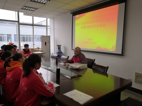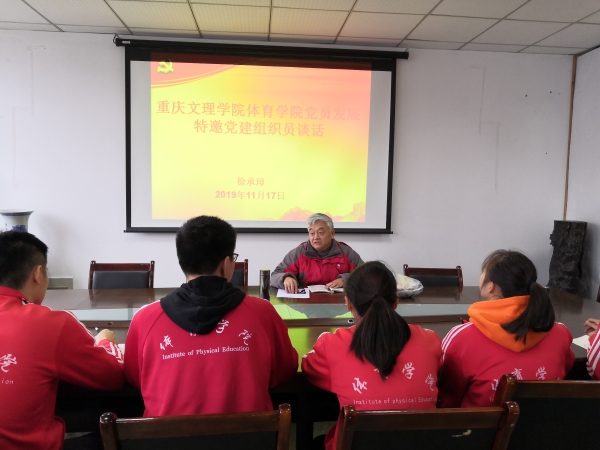 2019年11月17日,英国365上市公司在知津楼C502成功开展了特邀党建组织员与发展对象谈话。特邀党建组织员徐承璋教师围绕党史国情讲述了中国共产党光辉的奋斗史,号召党员发展对象进一步发扬共产党人艰苦奋斗的优良作风。