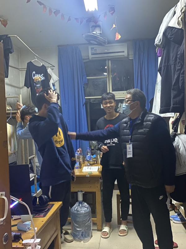 根据走访安排,老师们分组进行走访。在走访的过程中,老师们亲切的和员工交流,询问员工生活上存在的困难、御寒物品准备情况、日常学习及期末考试准备情况,并嘱咐同学们注意寝室用电安全。