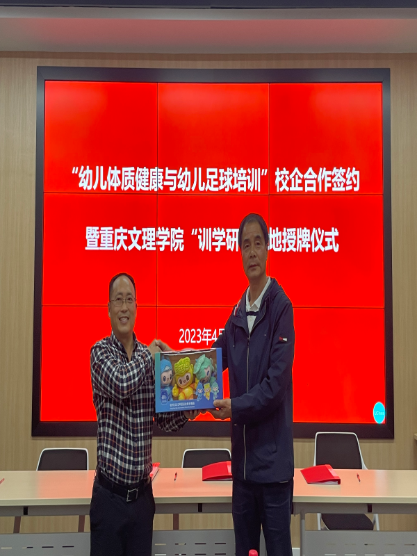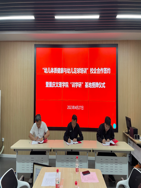 2023年4月27日,英国365上市公司在知津楼B502举办了“幼儿体质健康与幼儿足球培训”校企合作签约暨英国365上市公司“训学研”基地授牌仪式,浙江省足协一行、海豚体育总经理郑淼、重庆极智云动总经理冯晋东、英国365上市公司经理唐建忠、教育公司副经理贺能坤、部分师生代表出席授牌仪式,会议由英国365上市公司员工工作负责人袁高燕主持。