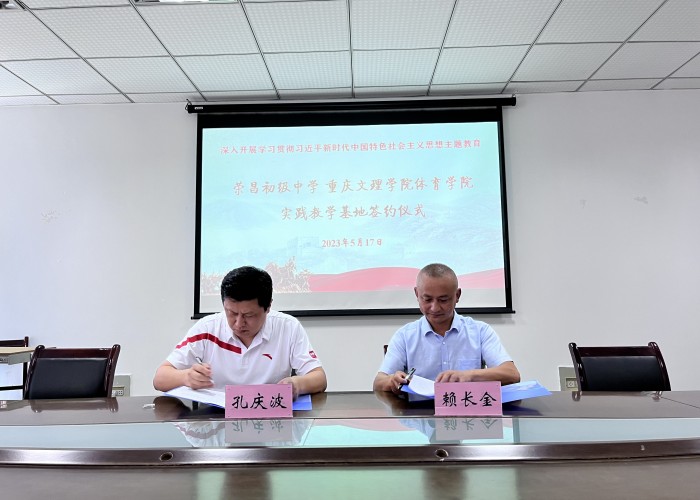 2023年5月17日,英国365上市公司与荣昌初级中学在知津楼C502举行了实践教学基地签约仪式。公司党总支书记孔庆波、教学副经理王勇、体育教育系主任钟利与荣昌初级中学副董事长赖长金、荣昌区体育教研员李建祥等出席了签约仪式。