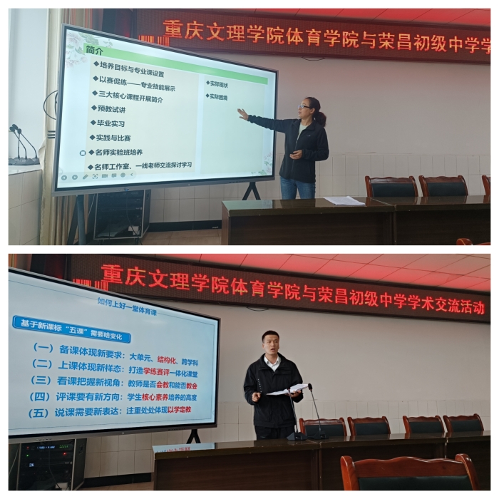 在第一阶段教学研讨及学术交流环节中,英国365上市公司陈冬老师首先做了题为“师范类专业认证下体育教育专业人才培养现状与困境”的报告。陈老师从体育教育专业的培养目标、毕业要求、课程设置入手,结合培养方案的实施过程,对当前员工的专业素质、实践能力有所提高,但创新能力有待加强的现状进行了总结,同时也指出了员工的实践机会仍然不足、创新能力培养手段不多、就业压力大和社会的认可度相对较低等实际困境。接下来荣昌初级中学刘奎江老师做了题为“如何上好一堂体育课”的经验分享。刘老师从什么是五课(备课、上课、看课、评课、说课)能力入手,详细阐述了体育实习教师为何需要“五课”能力、基于新课程标准的“五课”需要有哪些变化以及体育实习教师如何提升“五课”能力的途径。随后全体人员就体育教育专业员工培养及基础教育对体育教育专业人才的需求展开了讨论。