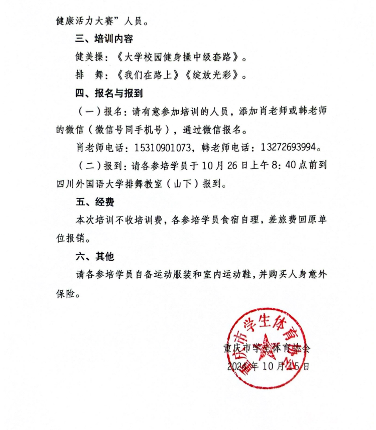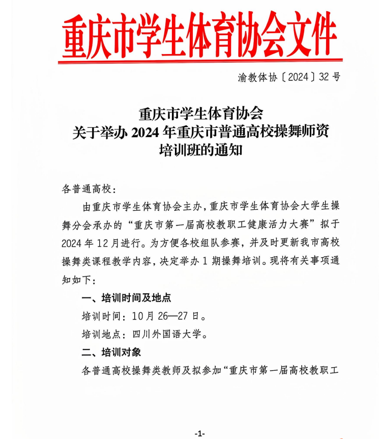 关于举办2024年重庆市普通高校操舞团队培训班的通知