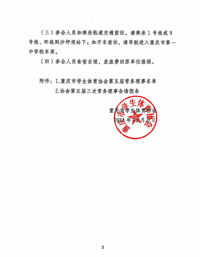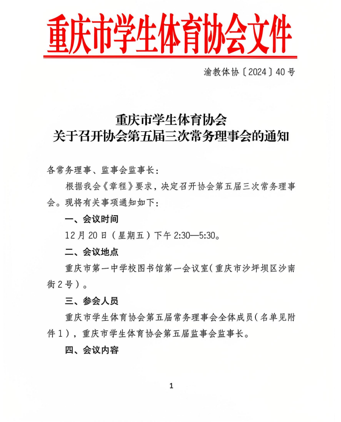 关于召开重庆市员工体育协会第五届三次常务理事会的通知