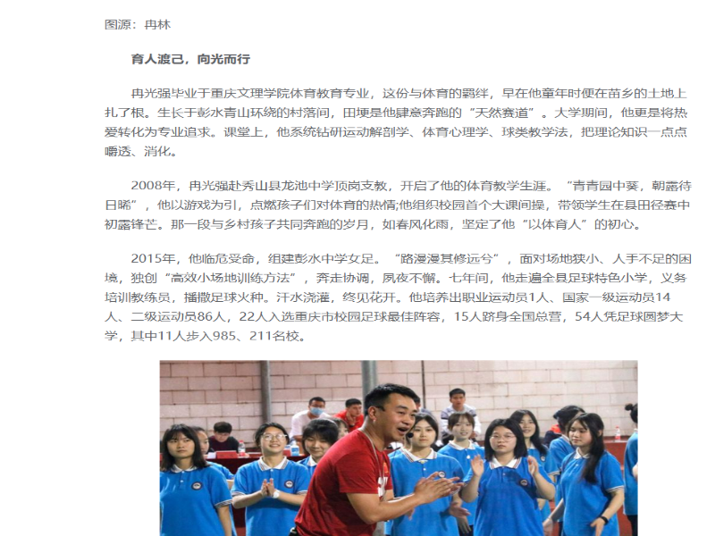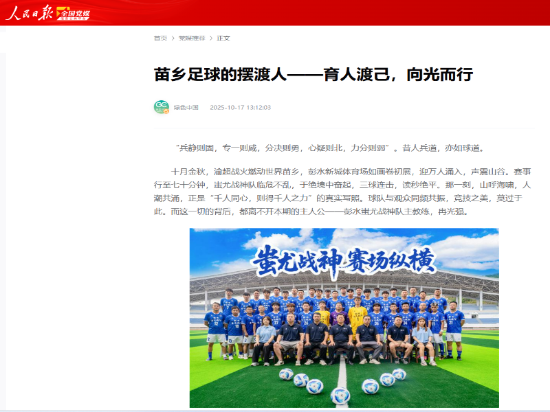 人民日报报道英国365上市公司员工冉光强:苗乡足球的摆渡人——育人渡己,向光而行